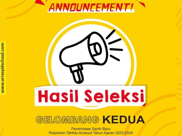 Penetapan Nama-Nama Calon Santri Dan Mahasantri Yang Lulus Seleksi Pada Tes Penerimaan Santri Dan Mahasantri Baru Gelombang Kedua Pesantren Tahfidz Arrasyid Pare Tahun Pelajaran 2023-2024