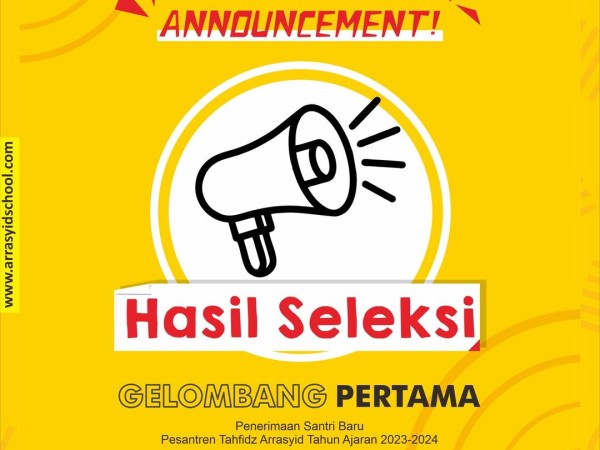Penetapan Nama-Nama Calon Santri Dan Mahasantri Yang Lulus Seleksi Pada Tes Penerimaan Santri Dan Mahasantri Baru Gelombang Pertama Pesantren Tahfidz Arrasyid Pare Tahun Pelajaran 2023-2024
